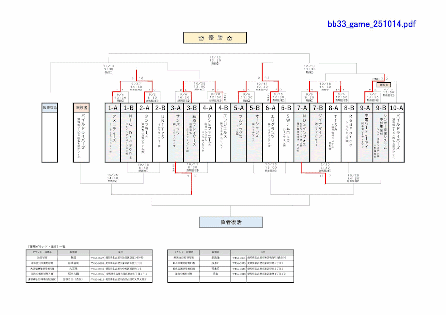 ※場所の地図は、名古屋ダイヤモンド野球連盟のサイトを参照ください。 https://ndbl.jp/stadium/